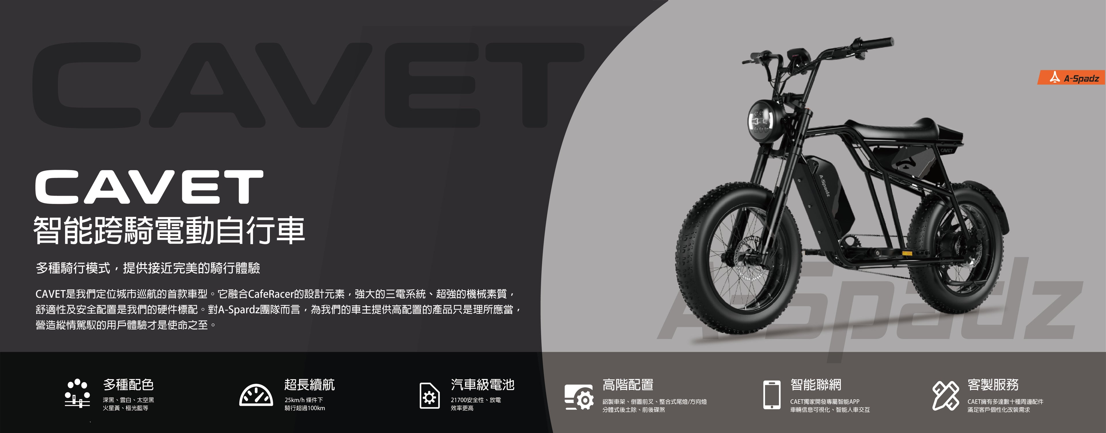 Cavet採用A-Spadz專利尼龍鋼齒輪軸,強度是一般尼龍齒輪軸的4.3倍。400W強勁馬達帶來強勁的騎乘體驗。即使在陡峭的山路上,Cavet馬達仍然提供穩定的動力。